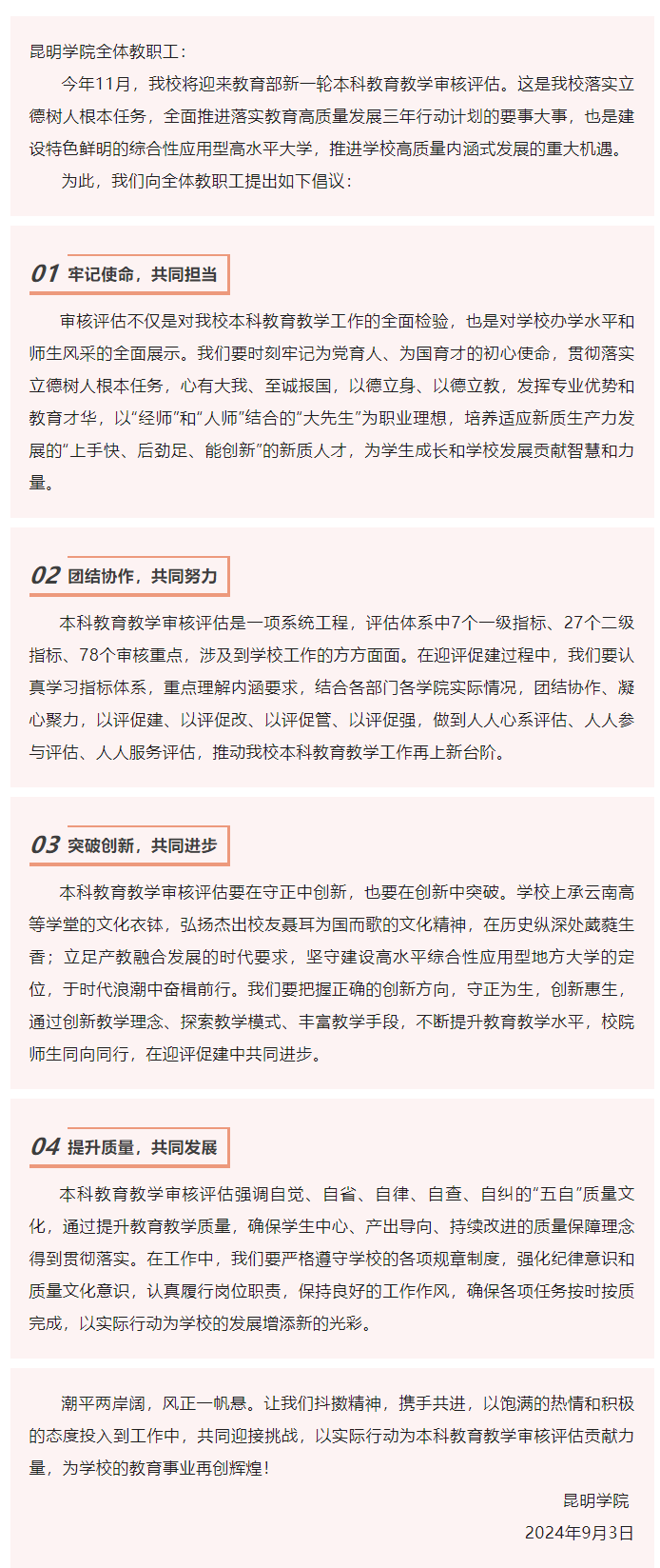 迎評有我 共鑄輝煌|昆明學(xué)院本科教育教學(xué)審核評估致全體教職工倡議書
