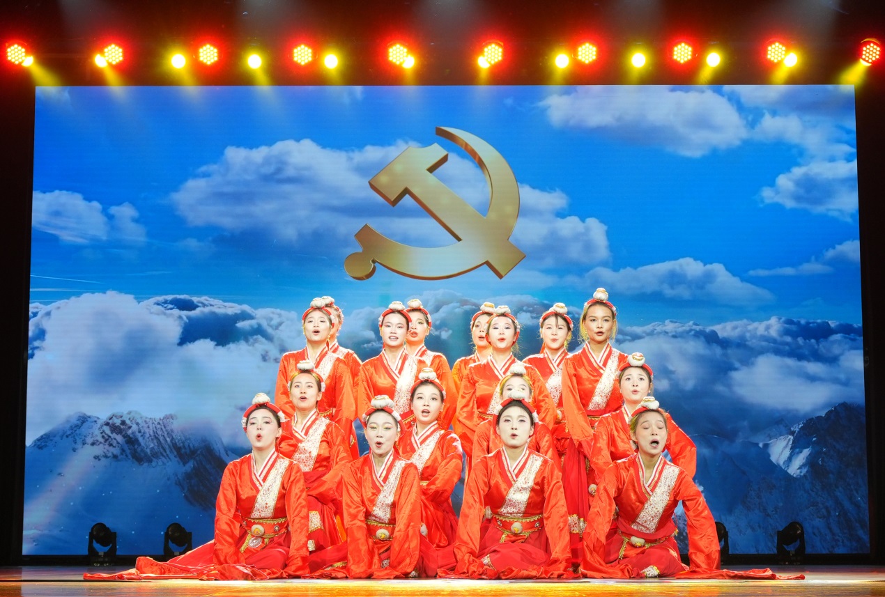 在雄壯激昂的國(guó)歌聲中,演出拉開序幕。奮進(jìn)新征程,建功新時(shí)代,原創(chuàng)歌曲《歌唱新時(shí)代》唱出全體昆院人最真摯的心聲。
