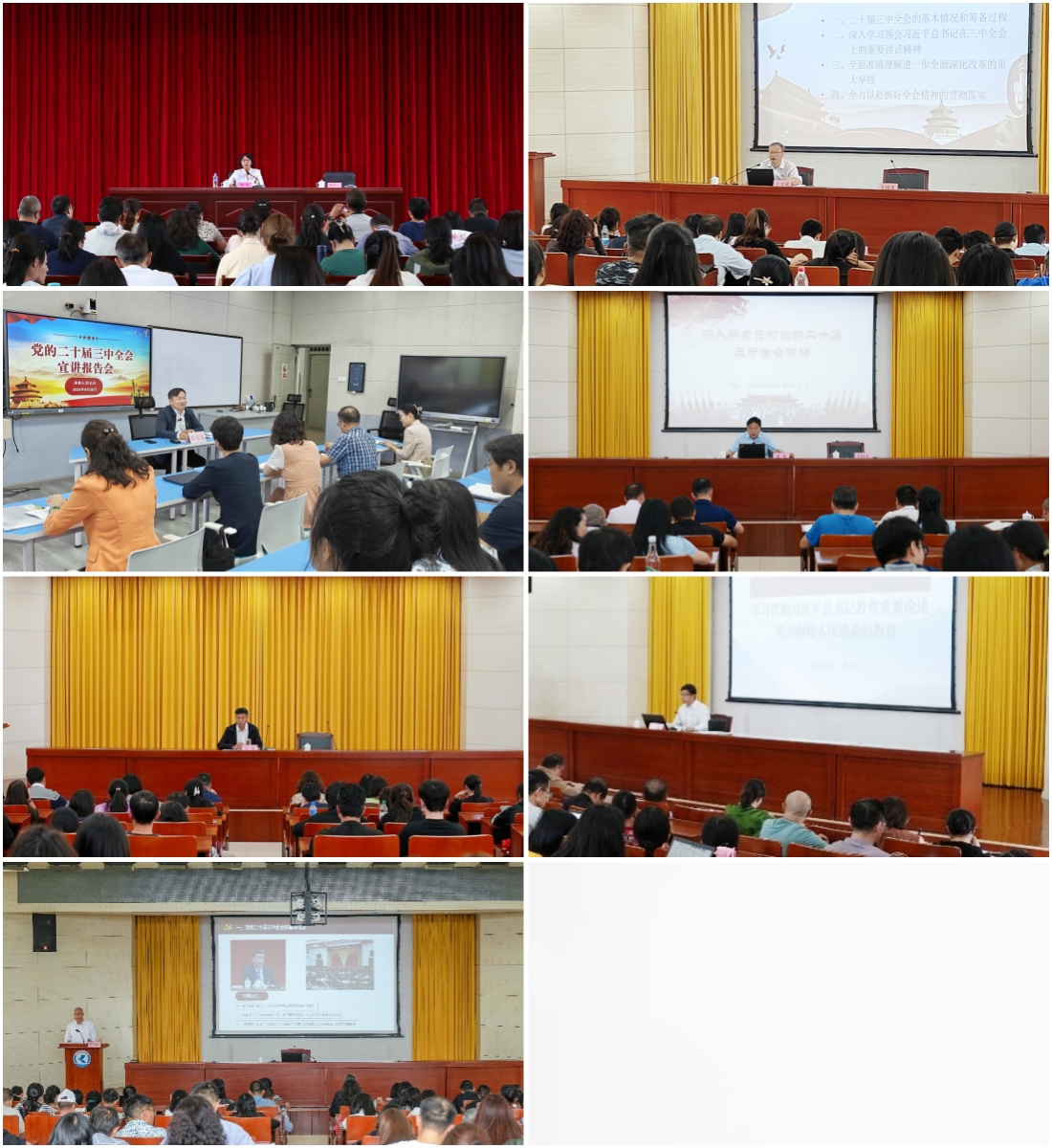本學期開學伊始,學校全面開展黨的二十屆三中全會精神宣講。學校校領(lǐng)導帶頭到聯(lián)系單位和分管部門開展宣講,覆蓋了22個二級黨組織和50多個單位部門,聯(lián)系學院和分管部門的老師、學生聆聽了報告,達到了宣講全覆蓋。