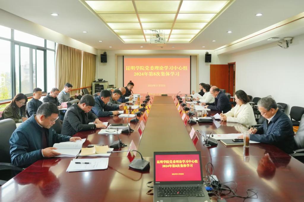 11月22日,昆明學(xué)院黨委理論學(xué)習(xí)中心組舉行2024年第8次集體學(xué)習(xí),圍繞習(xí)近平總書記關(guān)于保密工作和群團工作重要論述開展交流研討,為學(xué)校相關(guān)工作的完成打好堅實的思想和理論基礎(chǔ)。學(xué)習(xí)研討由黨委書記金幼和主持。