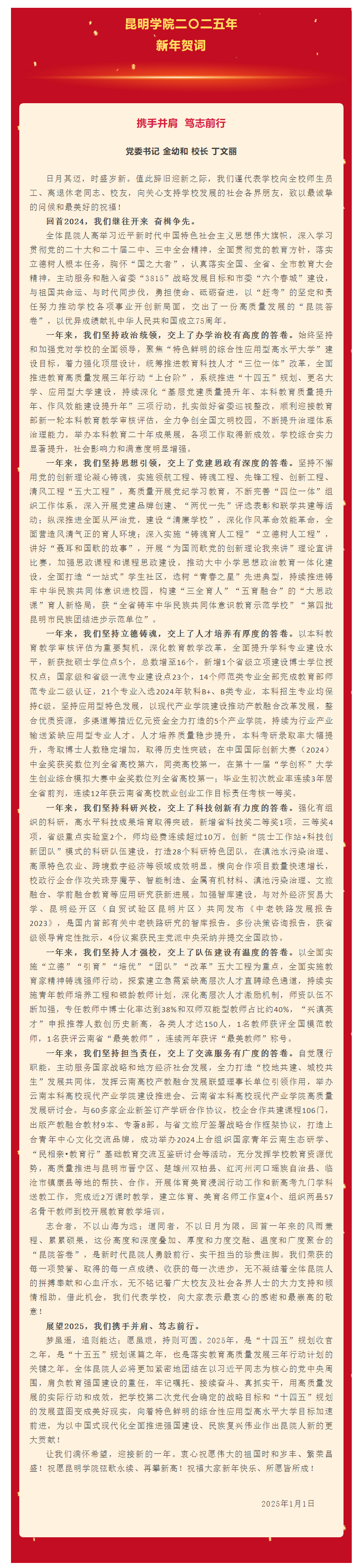 昆明學(xué)院二〇二五年新年賀詞