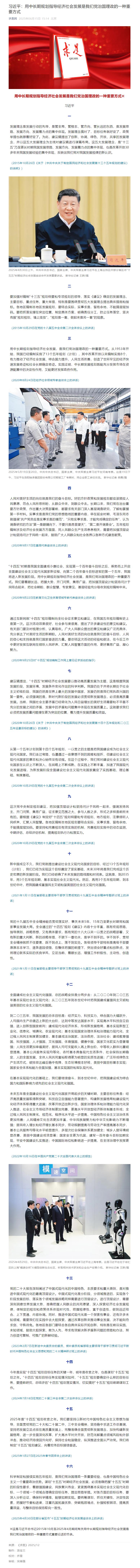 習(xí)近平:用中長(zhǎng)期規(guī)劃指導(dǎo)經(jīng)濟(jì)社會(huì)發(fā)展是我們黨治國(guó)理政的一種重要方式