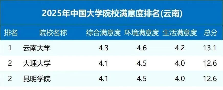 教育部陽光高考信息平臺(gaokao.chsi.com.cn)發(fā)布“2025年中國大學(xué)院校滿意度(云南省)”排名。昆明學(xué)院以總分12.6分的優(yōu)異成績,高居全省高校第二位。陽光高考網(wǎng)是由教育部高校學(xué)生司指定的高考招生信息發(fā)布網(wǎng)站,隸屬國家智慧教育公共服務(wù)平臺,這一排名基于全國高校歷屆畢業(yè)生的實名投票得出(涵蓋生活條件、環(huán)境以及綜合情況),是體現(xiàn)高校辦學(xué)質(zhì)量和學(xué)生體驗的重要指標(biāo)。