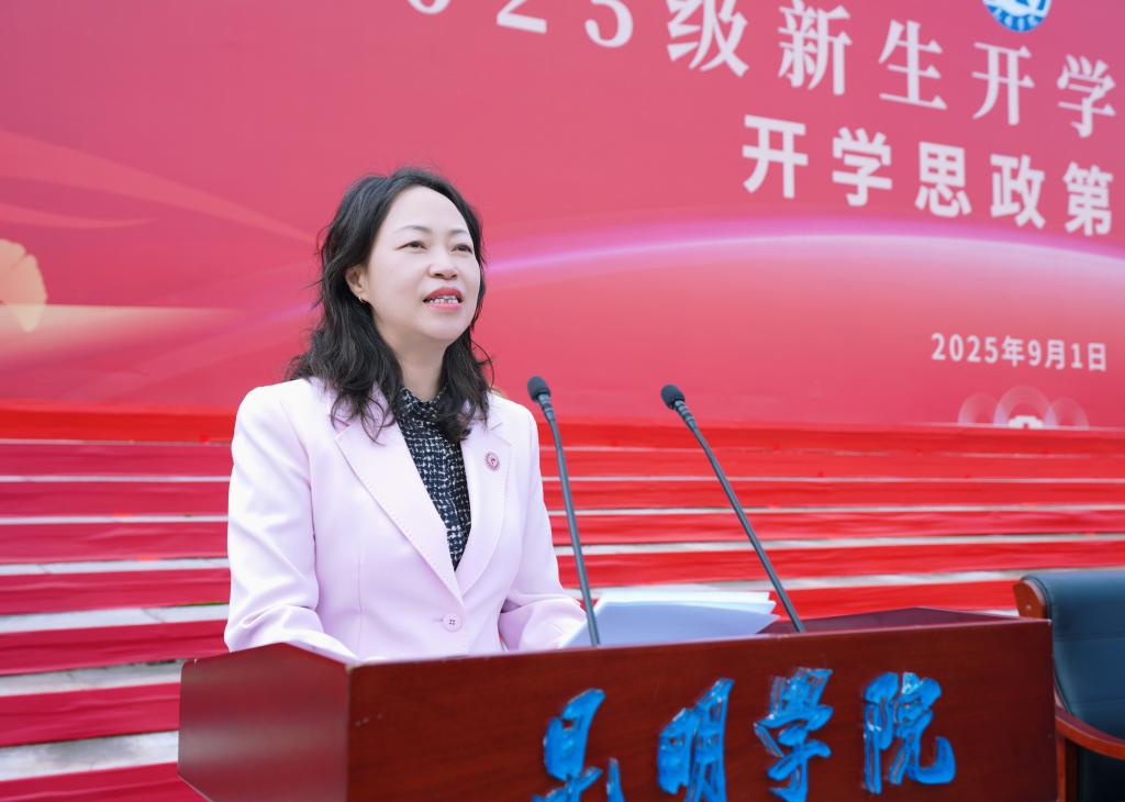 丁文麗致辭,向同學們表示熱烈歡迎,并介紹了學校的辦學歷史和發(fā)展成就。她說,2025級的新生們?yōu)閾碛猩詈竦滋N的昆明學院注入了最前沿的活力,是學校發(fā)展的青春“合伙人”與未來共創(chuàng)者。她勉勵新生要在強國復興進程中,精準定位個人“坐標”,深刻領悟國家社會經(jīng)濟發(fā)展對人才的需求,把握創(chuàng)新創(chuàng)業(yè)教育的契機,投身堅持和發(fā)展全面建成社會主義現(xiàn)代化強國、實現(xiàn)中華民族偉大復興的奮斗征程;要在學校改革發(fā)展中,書寫屬于自己的精彩華章,珍惜在校學習的寶貴時光,扎實掌握專業(yè)知識、夯實專業(yè)能力,積極參與實驗實訓、社會實踐、學科競賽以及科研項目,為學校發(fā)展貢獻自身力量;要在人生關鍵階段,構建自主知識體系,增強思辨能力,持續(xù)積累經(jīng)驗、鍛煉能力、磨煉意志,不斷提升自我,實現(xiàn)人生價值。