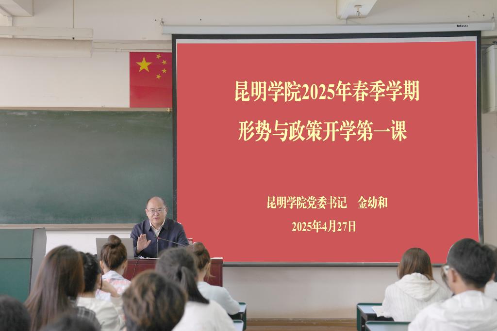 為深入貫徹落實立德樹人根本任務(wù),充分發(fā)揮思想政治理論課在人才培養(yǎng)中的關(guān)鍵作用,推動黨的創(chuàng)新理論入腦入心,昆明學(xué)院黨委書記和校長帶頭,全體校領(lǐng)導(dǎo)走進(jìn)課堂,為同學(xué)們講授了一堂堂生動而深刻的形勢與政策思政課。