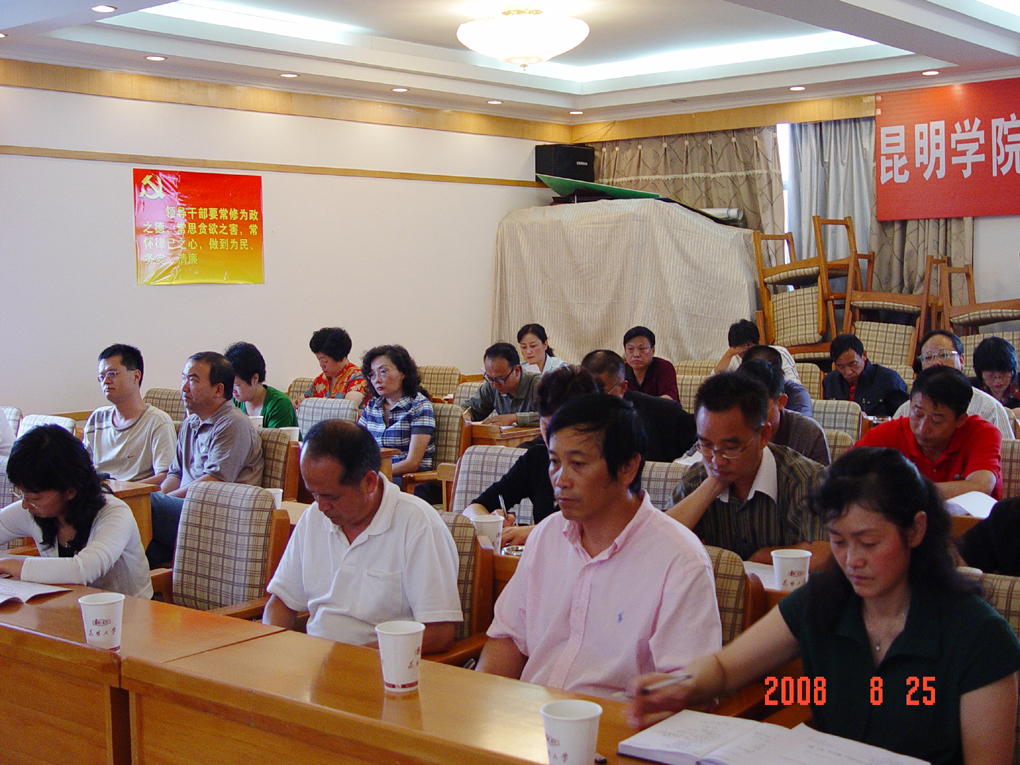 8月25日,昆明學院2008年新學期開學行政工作會在行政樓四樓大會議室召開,院領(lǐng)導、各系負責人以及相關(guān)部門負責人參加了會議。會期一天,上午的會議由羅明東副院長主持,下午的會議由熊晶副院長主持。