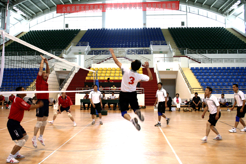 為進一步提高我省高校教職工排球暨校級領(lǐng)導(dǎo)網(wǎng)球競技水平,增進我省各兄弟院校之間的學(xué)習(xí)與交流。由大理學(xué)院承辦的云南省第五屆高校教職工排球賽暨校級領(lǐng)導(dǎo)網(wǎng)球邀請賽于7月25日在大理學(xué)院體育科學(xué)院體育館拉開序幕。來自我省16支高校男女排球隊暨7支校級領(lǐng)導(dǎo)網(wǎng)球隊近240人參加了比賽。經(jīng)過六天的緊張角逐,昆明學(xué)院男排在時間緊,組隊晚、磨合時間短的情況下,經(jīng)過隊員們的共同努力和頑強拼搏,不畏強手,頂住壓力,最終取得第四名的好成績。