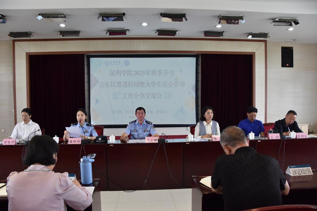為扎實做好新學期校園安全管理工作,筑牢師生生命財產(chǎn)安全防線,9月5日上午,保衛(wèi)處、學生處(學生工作部、武裝部)聯(lián)合昆明市公安局經(jīng)開分局、昌宏路派出所召開秋季開學公安民警進校園暨大學生安全管理工作分享交流會。學生處處長王濤、副處長劉艷萍、保衛(wèi)處處長喻玲、副處長張智益、昆明市公安局經(jīng)開分局執(zhí)法監(jiān)督大隊教導員閆文賦、昌宏路派出所社區(qū)民警戴岍嶺與18個二級學院副書記、輔導員100余人共同參加本次會議。