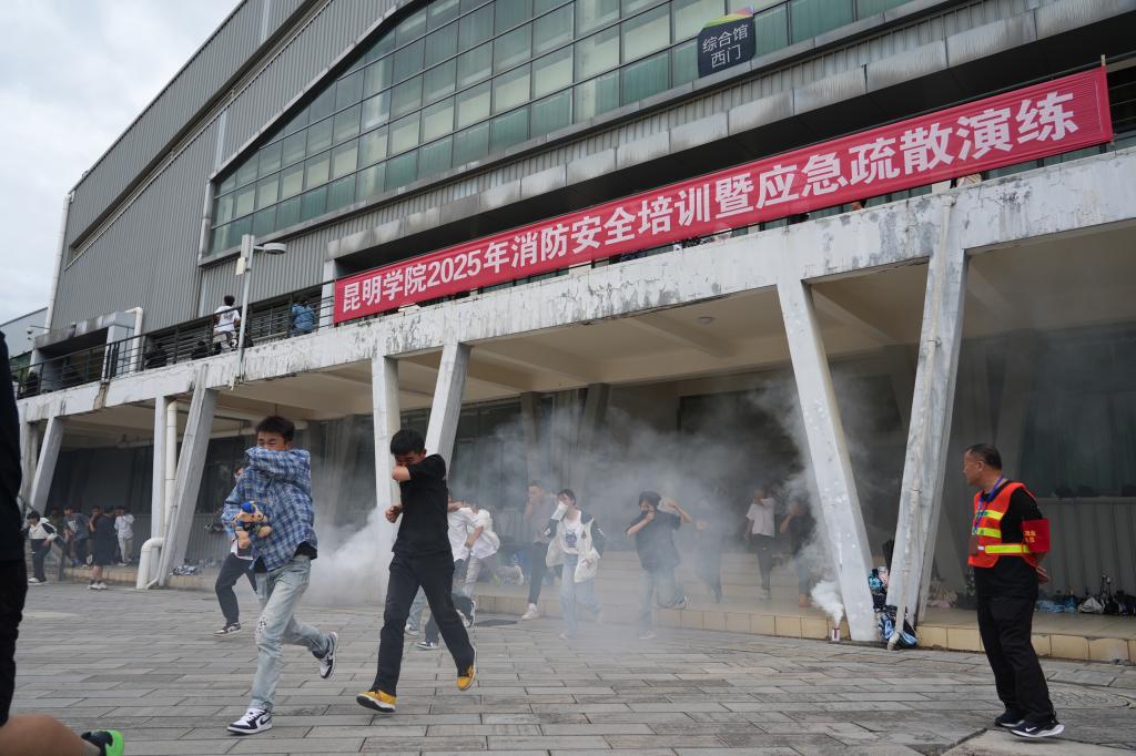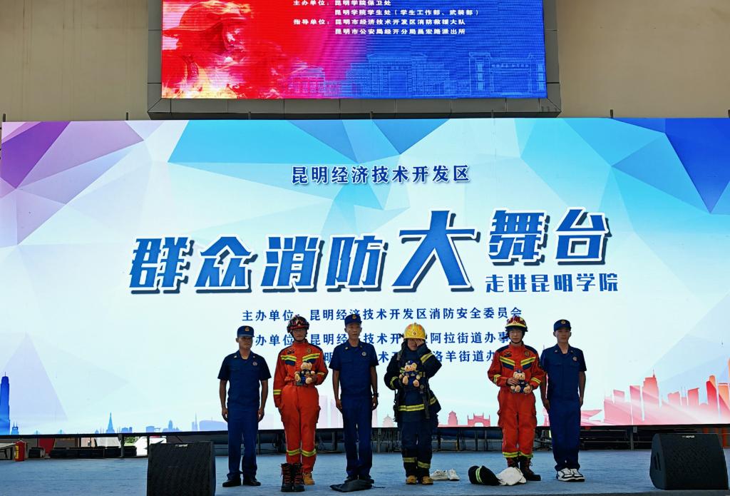 9月12日,學(xué)校聯(lián)合昆明市經(jīng)開區(qū)消防應(yīng)急救援大隊在綜合館舉行昆明學(xué)院2025年消防安全培訓(xùn)暨應(yīng)急疏散演練。