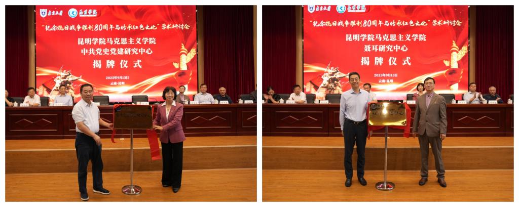 會上為“昆明學院馬克思主義學院中共黨史黨建研究中心”和“昆明學院馬克思主義學院聶耳研究中心”揭牌。