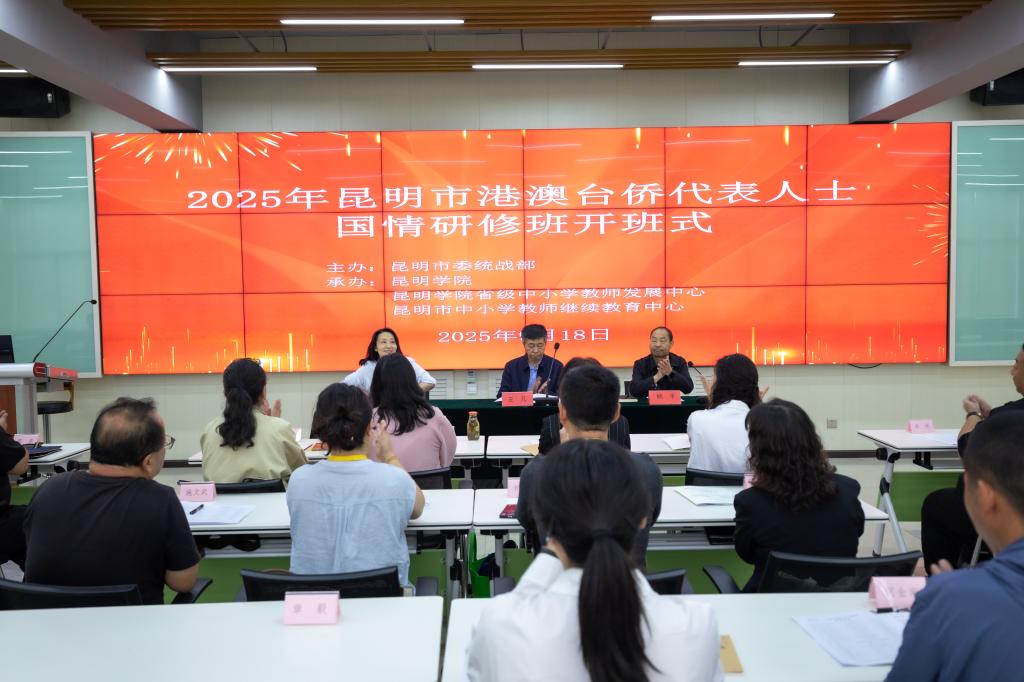 9月18日,由市委統(tǒng)戰(zhàn)部主辦、昆明學(xué)院承辦的“2025年昆明市港澳臺僑代表人士國情研修班”開班。市委統(tǒng)戰(zhàn)部副部長張競、學(xué)校黨委委員、副校長王凡等領(lǐng)導(dǎo)出席開班式。40余名來自全市的港澳臺僑代表人士及市臺聯(lián)、市僑聯(lián)相關(guān)負(fù)責(zé)同志參加研修。