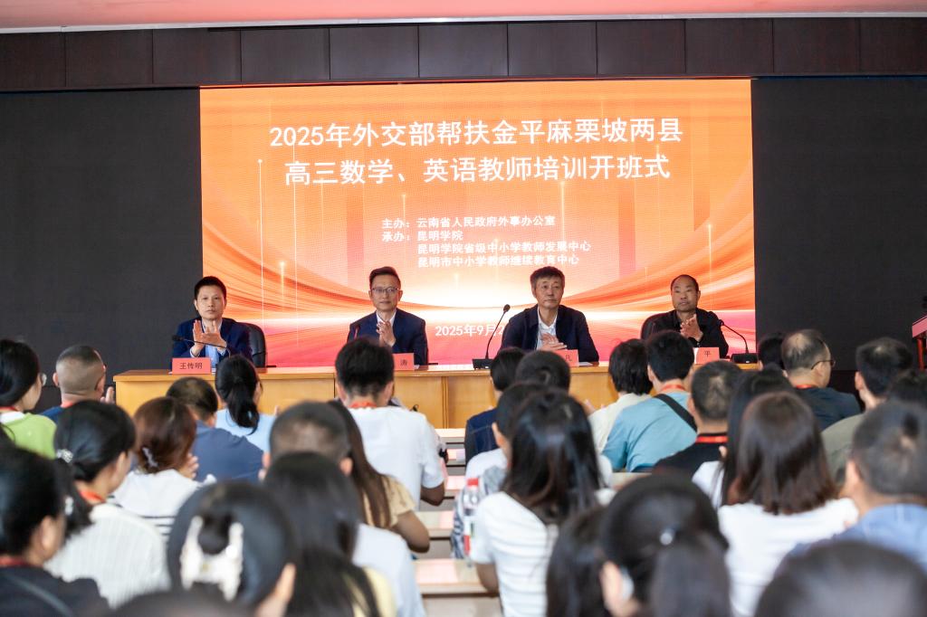 9月22日,受外交部委托,云南省人民政府外事辦公室主辦,學(xué)校承辦的“2025年外交部幫扶金平麻栗坡兩縣高三數(shù)學(xué)、英語教師培訓(xùn)”開班。省外辦副主任合濤、學(xué)校黨委委員、副校長王凡出席開班式。來自金平、麻栗坡兩縣的100名高三教師參加培訓(xùn)。