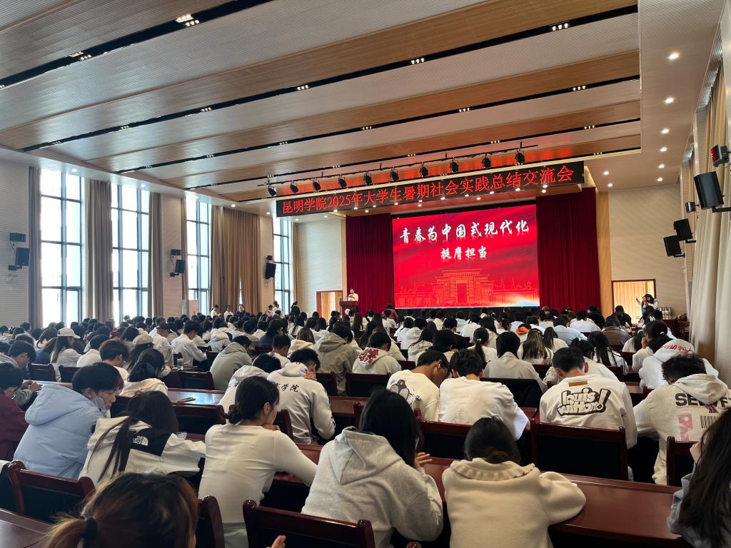 10月24日,昆明學(xué)院2025年大學(xué)生暑期社會實踐總結(jié)交流會在博學(xué)樓報告廳順利舉行。學(xué)校黨委副書記李莉出席會議,校團委、宣傳部、學(xué)生處、教務(wù)處、招生就業(yè)處等部門負責人,各二級學(xué)院黨委副書記,校團委全體專職團干部、各二級學(xué)院團委書記(負責人)及學(xué)生代表270余人參加會議。