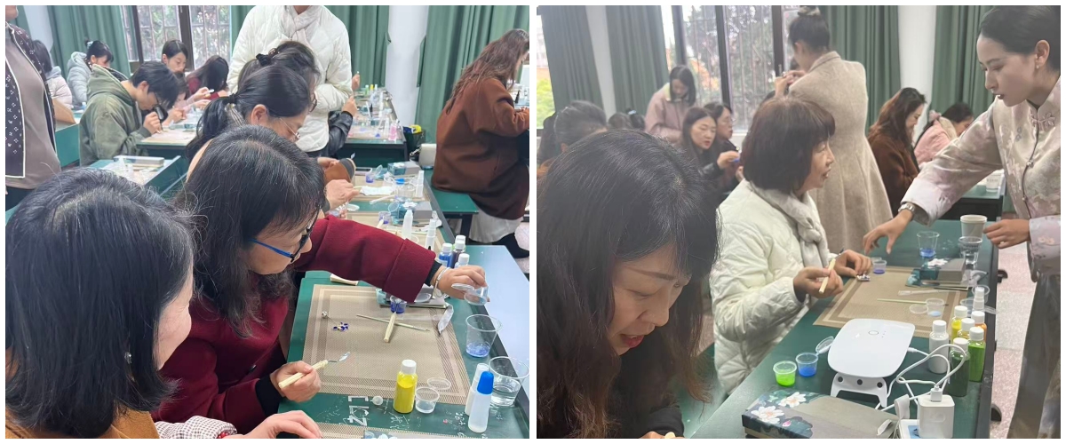 賦能“她力量”:活動(dòng)從講座到實(shí)踐到傳承,將傳統(tǒng)文化融入凝聚巾幗向心力中。一件件掐絲琺瑯作品在師生的指尖成型,金絲與彩砂交織出絢麗紋樣,既有傳統(tǒng)文化的厚重底蘊(yùn),又有創(chuàng)新進(jìn)取的鮮活力量。