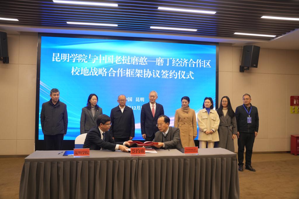 昆明學(xué)院與中國老撾磨憨—磨丁經(jīng)濟(jì)合作區(qū)管理委員會(huì)還同時(shí)舉辦了校地戰(zhàn)略框架協(xié)議簽約儀式。