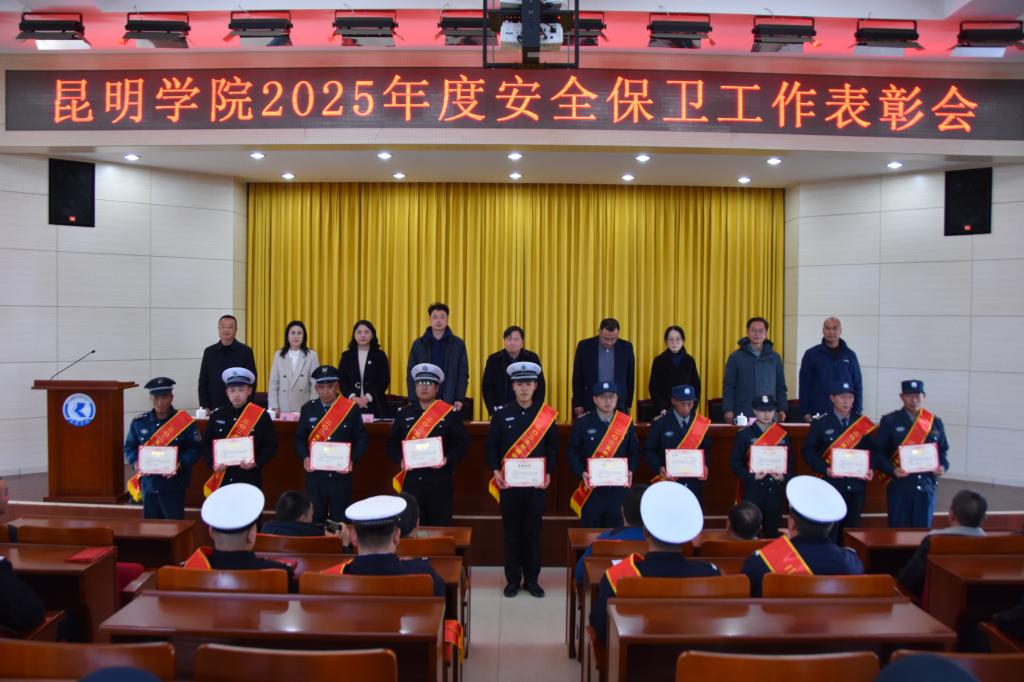 12月29日,學(xué)校召開2025年度安全保衛(wèi)工作表彰會(huì)。學(xué)校黨委委員、副校長(zhǎng)彭志遠(yuǎn)出席表彰會(huì)。職能部門黨委、學(xué)生處、資產(chǎn)與實(shí)驗(yàn)室管理處、實(shí)訓(xùn)基地管理中心及云南中和保安服務(wù)(集團(tuán))有限公司相關(guān)負(fù)責(zé)人、保衛(wèi)處全體教職工、駐校保安大隊(duì)和學(xué)生治安服務(wù)隊(duì)隊(duì)員參加,保衛(wèi)處處長(zhǎng)喻玲主持。
