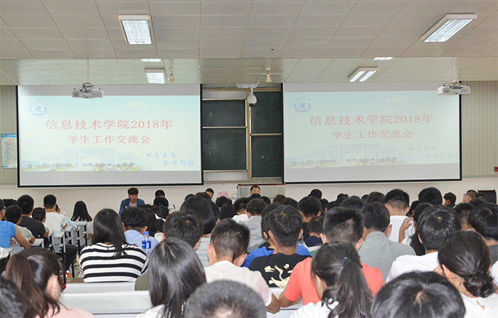 9月2日,為了讓18級(jí)新生盡快了解學(xué)生工作內(nèi)容,增強(qiáng)安全防范意識(shí),熟悉各項(xiàng)規(guī)章制度,更好地在紀(jì)律和規(guī)矩的框架下開(kāi)啟大學(xué)生活。信息技術(shù)學(xué)院在博識(shí)樓1003組織開(kāi)展學(xué)生工作介紹會(huì)。學(xué)院黨總支書(shū)記陶軍、全體輔導(dǎo)員,18級(jí)全體新生參加會(huì)議。輔導(dǎo)員岳維好老師主持會(huì)議。