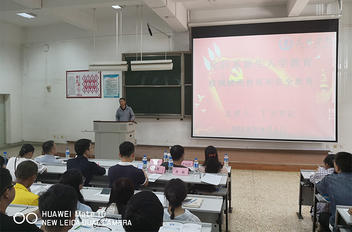 9月1日,昆明學(xué)院化學(xué)科學(xué)與技術(shù)系滿懷希望迎來(lái)了一批新同學(xué)。為了更好地引導(dǎo)新生入學(xué),幫助新生規(guī)劃好并順利度過(guò)四年大學(xué)時(shí)光,我系在博識(shí)樓1001舉行了2018級(jí)新生入學(xué)教育大會(huì),化學(xué)科學(xué)與技術(shù)系黨總支書(shū)記丁方、系主任王寶玲,黨總支副書(shū)記喬永鋒、副主任李維莉以及2018級(jí)全體班主任參加大會(huì)。大會(huì)由團(tuán)總支書(shū)記戴恩睿主持。