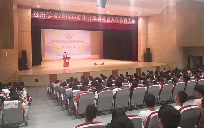 9月1日,經(jīng)濟(jì)學(xué)院在學(xué)生會堂舉行2018級新生開學(xué)典禮暨入學(xué)教育大會,學(xué)院全體教師和新生共500余人參加會議,院領(lǐng)導(dǎo)施磊、雷新華、李雄、林濤出席會議。會議由黨總支書記施磊主持。