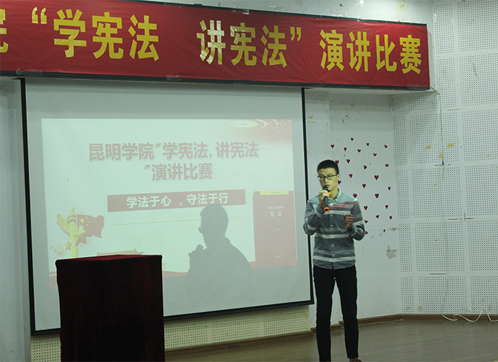 9月13日,昆明學(xué)院“學(xué)憲法,講憲法”演講比賽在青年中心111報告廳成功舉行。經(jīng)過十八家院系初賽,由每個院系推薦了一名選手參加此次演講比賽。十八家院系的學(xué)生代表以及學(xué)生會主席團成員、全體干部,共計三百余名同學(xué)觀看了此次“學(xué)憲法,講憲法”演講比賽。此次比賽由學(xué)生處副處長王子龍、團委副書記沈嘉、團委副書記郎易、宣傳部周權(quán)、馬克思主義學(xué)院肖磊擔(dān)任評委。