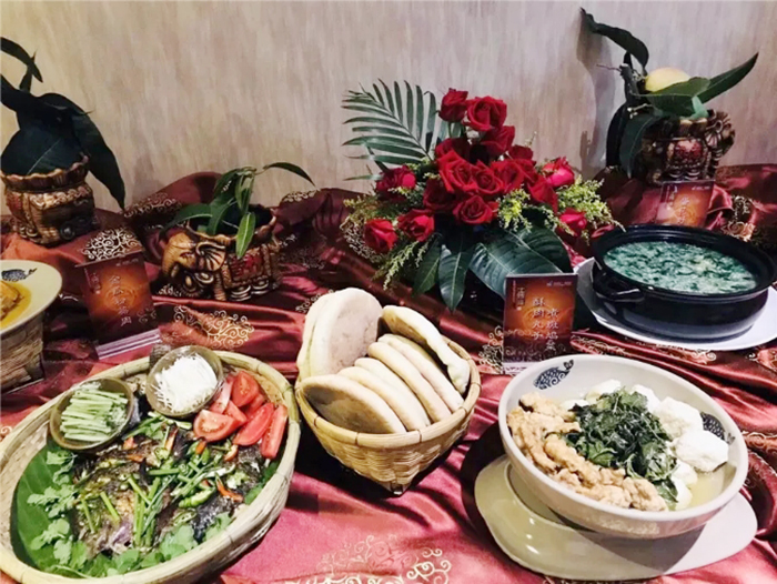 課題組還研制了華坪民族融合大餐——土司宴,土司宴的制作講究食材的常見易得,而制作的精良美味,更具民族風(fēng)情。選取華坪本地放養(yǎng)家禽、時令蔬菜和特色野菜,經(jīng)過專業(yè)廚師們巧手匠心的制作和烹飪,臘月風(fēng)干肉、土司烤魚、蛋花野菜、酥肉丸子煮斑鳩菜……一道道具有華坪少數(shù)民族特色的菜肴新鮮出爐,為四方來賓帶來一場視覺和味覺的盛宴。