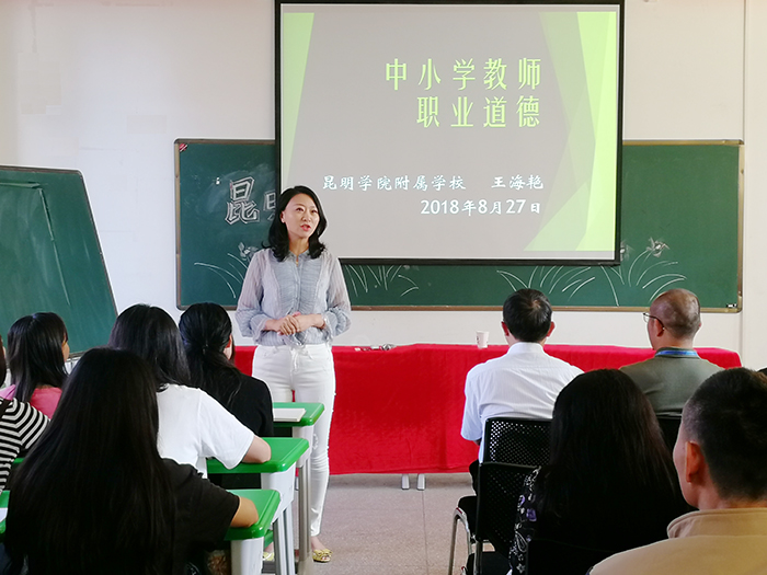 為加強我校教師隊伍建設(shè),提高教師師德和業(yè)務(wù)水平。8月25日-28日我校開展了為期4天的校本培訓(xùn)。此次培訓(xùn)有計劃、有組織、有步驟,內(nèi)容豐富,成績喜人。 李晉德校長從學(xué)校工資制度改革、獎懲辦法、考勤制度及學(xué)校六年發(fā)展規(guī)劃向大家做交流。他將學(xué)校未來六年發(fā)展分“兩個三年”走,緊緊圍繞“服務(wù)、特色、質(zhì)量”的發(fā)展理念,不斷形成“領(lǐng)導(dǎo)服務(wù) 教師愛校 學(xué)生樂學(xué)”和“學(xué)生開心 家長舒心 社會放心”的良好氛圍,從而不斷實現(xiàn)“經(jīng)開領(lǐng)先 昆明一流 全國示范”的總目標。李廣峰副校長則從學(xué)校常規(guī)教學(xué)管理制度及教學(xué)過程中管理實施細則向大家作介紹。“沒有規(guī)矩,不成方圓。”建立健全教學(xué)常規(guī)管理制度是抓好教學(xué)工作、有序開展教學(xué)活動的前提和保證。 王海艷書記為全體教師進行“中小學(xué)教師職業(yè)道德”培訓(xùn),進一步規(guī)范了我校教師的從教行為,全面提升教師職業(yè)道德素養(yǎng)和業(yè)務(wù)素質(zhì)。使得我校教師在職業(yè)道德規(guī)范的要求中不斷內(nèi)化為自身的自覺行為,并堅持做到正人先正己,身教重于言教、樹立良好的師表形象,努力使自己的行為符合新時期教師的職業(yè)道德規(guī)范。 昆明盤龍區(qū)教育教學(xué)科研中心、昆明盤龍區(qū)教師進修學(xué)校陶樹坤老師對全校教師職業(yè)規(guī)劃和工作智慧等方面進行了專業(yè)指導(dǎo)。陶老師用一個個鮮活的師生案例向大家傳授著教師如何在教育教學(xué)中展現(xiàn)智慧與力量,如何用潛移默化的方式帶領(lǐng)學(xué)生進行思考與學(xué)習(xí),幫助學(xué)生更快地成長起來。
