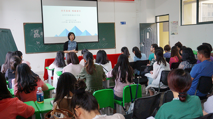 講課授課是教師的天職,如何提高教師的講課能力與講課水平,事關(guān)教師的發(fā)展,決定學(xué)生與學(xué)校的成績。我校高度重視教師的發(fā)展提升,從教師自身出發(fā),分別開展了教學(xué)質(zhì)量分析、班主任培訓(xùn)、教師聽評課標準培訓(xùn)及教師課標考試、專業(yè)能力測試等相關(guān)培訓(xùn),配以課標測試達到"以考促學(xué)、以考促訓(xùn)、以考促研、以考促教"的作用。 在教學(xué)質(zhì)量分析會上,中小學(xué)分別就學(xué)科、就年級、就班級進行全面、細致的分析研究。以數(shù)據(jù)統(tǒng)計為依據(jù),全面透析考試背后的現(xiàn)象與問題,并提出了教學(xué)改進措施,為新學(xué)期的教學(xué)工作指明了前進的方向。 在班級管理及班主任工作交流方面,學(xué)校邀請昆明市骨干教師、昆明市優(yōu)秀班主任、昆明市羅蓉名師工作室成員、祿勸縣中小學(xué)"十杰"教師劉瑩老師為我校全體教師做《班主任工作經(jīng)驗交流》培訓(xùn)。通過與劉瑩老師此次交流分享的機會,使得我校全體教師特別是班主任教師達到了相互交流、經(jīng)驗共享的目的,詮釋了現(xiàn)代教師的教育智慧,對提高班主任管理水平具有極大的促進作用。西山區(qū)教研員、資深小學(xué)語文教師景云萍老師從一年級教學(xué)常規(guī)目標入手,講述了小學(xué)一年級行為習(xí)慣和學(xué)習(xí)習(xí)慣培養(yǎng)中需要注意的事項,為我們對學(xué)生習(xí)慣的養(yǎng)成提供了具體方向。 本學(xué)期以教師發(fā)展和新課程校本培訓(xùn)為重點,加大教師繼續(xù)教育和校本培訓(xùn)的力度,緊扣提高教師素質(zhì)教育為主線。全體教師認真學(xué)習(xí),與時俱進,開創(chuàng)了我校教師校本培訓(xùn)工作的良好局面。好的開始是成功的一半,我校師生凝心聚力,為努力開創(chuàng)我校良好發(fā)展態(tài)勢奮力前行。