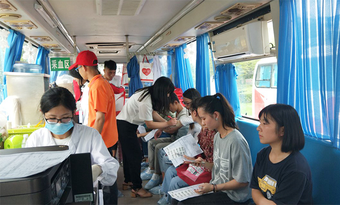 清晨,空氣中的點點涼意并沒有阻礙志愿者們早早集合,在進行短暫的分工后,志愿者們把物資搬到聶耳廣場做活動前期準(zhǔn)備,等候獻血車和同學(xué)們的到來。9點鐘,獻血車出現(xiàn)在同學(xué)們的視野中,而這也意味著本次獻血活動的正式開始。同學(xué)們被吸引過來參加獻血,志愿者們按照計劃維護現(xiàn)場秩序,為同學(xué)們講解無償獻血的相關(guān)知識和注意事項并鼓勵同學(xué)們積極獻血。現(xiàn)場醫(yī)護人員耐心解答同學(xué)們的疑惑。獻血的同學(xué)井然有序地領(lǐng)取獻血表,填表,志愿者們現(xiàn)場給來獻血的同學(xué)體檢和驗血,之后同學(xué)們走進獻血車抽血并由志愿者給獻血的同學(xué)發(fā)放紀(jì)念品和獻血證。在獻血過程中天空下起了雨,但這并沒有打擊同學(xué)們獻血的積極性,志愿者們也沒有因為下雨而離職,大家都負(fù)責(zé)自己的崗位,互相配合,一起為本學(xué)期最后一次獻血活動貢獻自己的力量。此次無償獻血活動持續(xù)到下午六點,共254人參與了此次獻血活動,獻血量達76200cc。