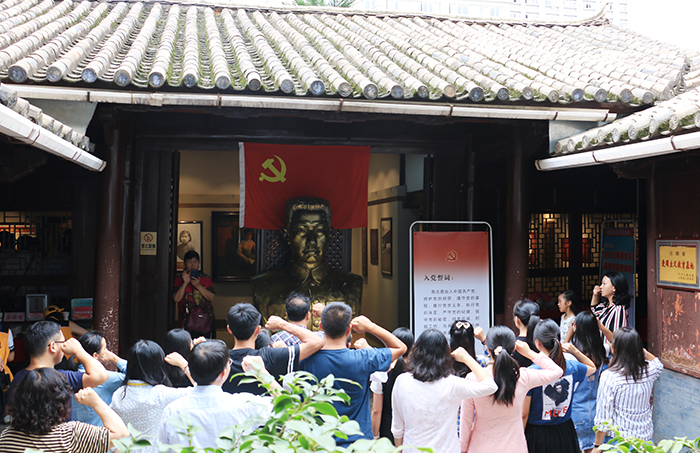 中共云南地下黨建黨舊址,是中國共產(chǎn)黨在云南最早的地方組織, 1926年11月7日,中國共產(chǎn)黨云南特別支部在昆明成立,翻開了云南革命斗爭的新篇章。觀看完畢后,全體黨員們在王德三同志雕塑前,面向黨旗,重溫入黨誓詞,表達了對黨的崇敬之情。