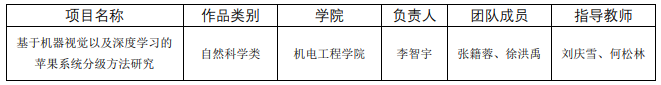 6月6日,云南省第十二屆“挑戰(zhàn)杯”大學(xué)生學(xué)術(shù)科技節(jié)決賽在昆明醫(yī)科大學(xué)舉辦,我校進(jìn)入決賽的三個作品分獲一等獎和二等獎,其中《基于機器視覺及深度學(xué)習(xí)的蘋果分級方法研究》獲一等獎并被推選進(jìn)入國賽環(huán)節(jié)。