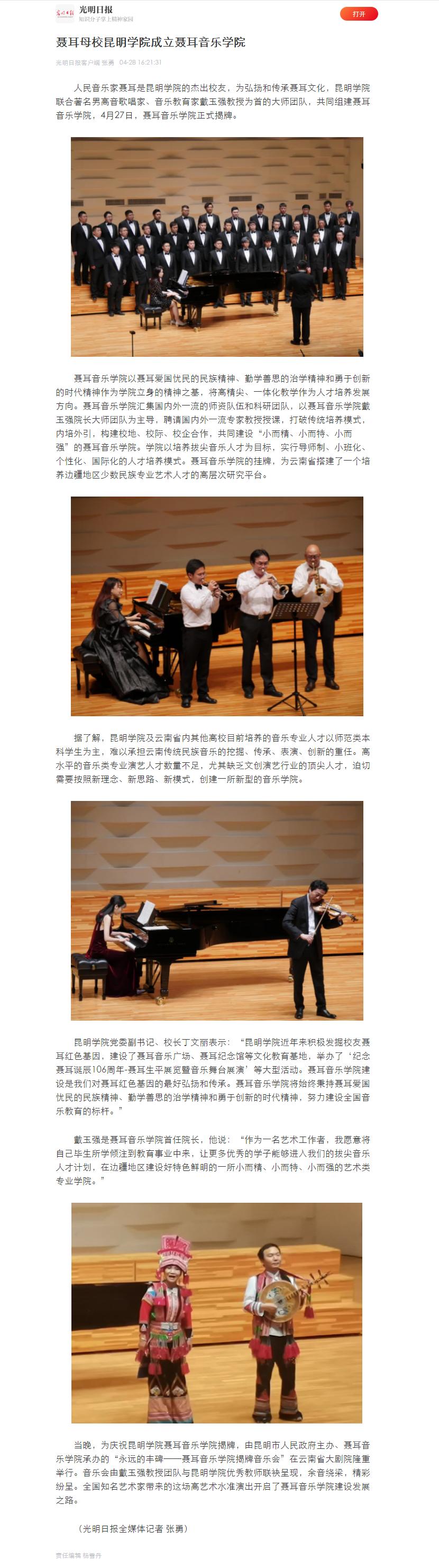 聶耳母校昆明學(xué)院成立聶耳音樂(lè)學(xué)院