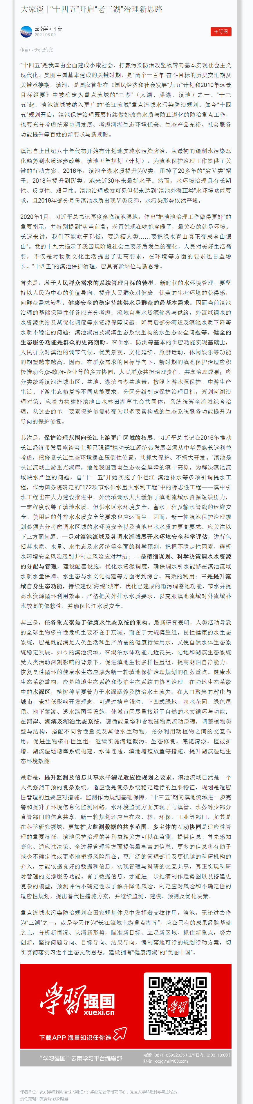 大家談 | “十四五”開啟“老三湖”治理新思路
