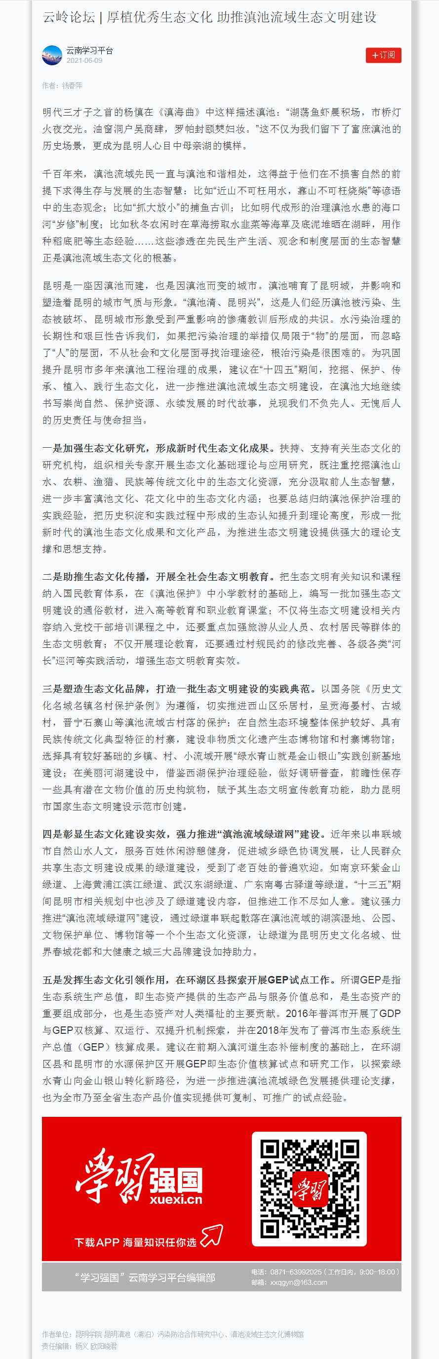 云嶺論壇 | 厚植優(yōu)秀生態(tài)文化 助推滇池流域生態(tài)文明建設(shè)