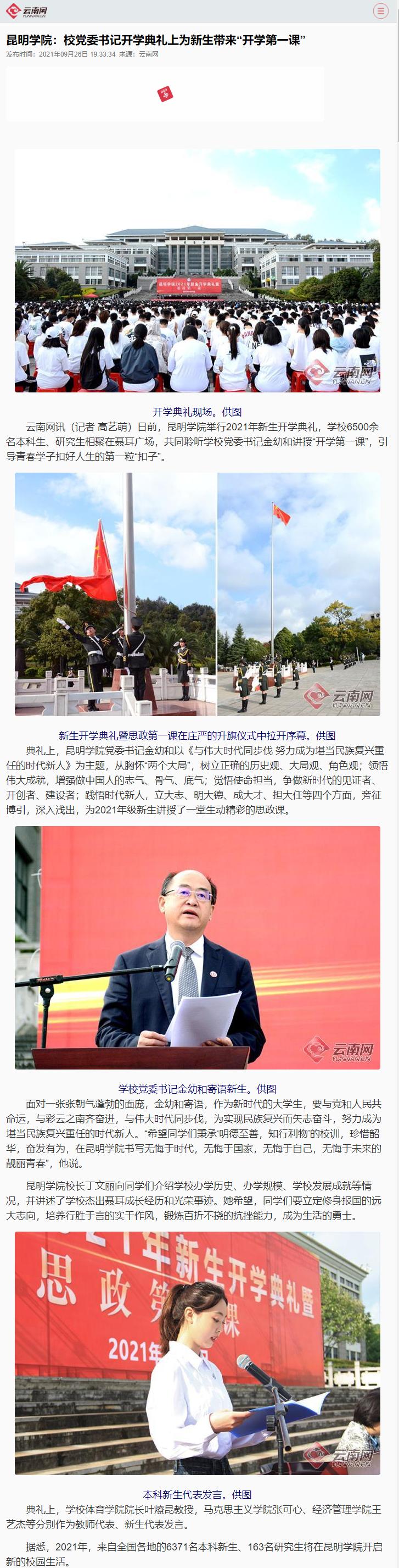 昆明學(xué)院:校黨委書記開學(xué)典禮上為新生帶來“開學(xué)第一課”