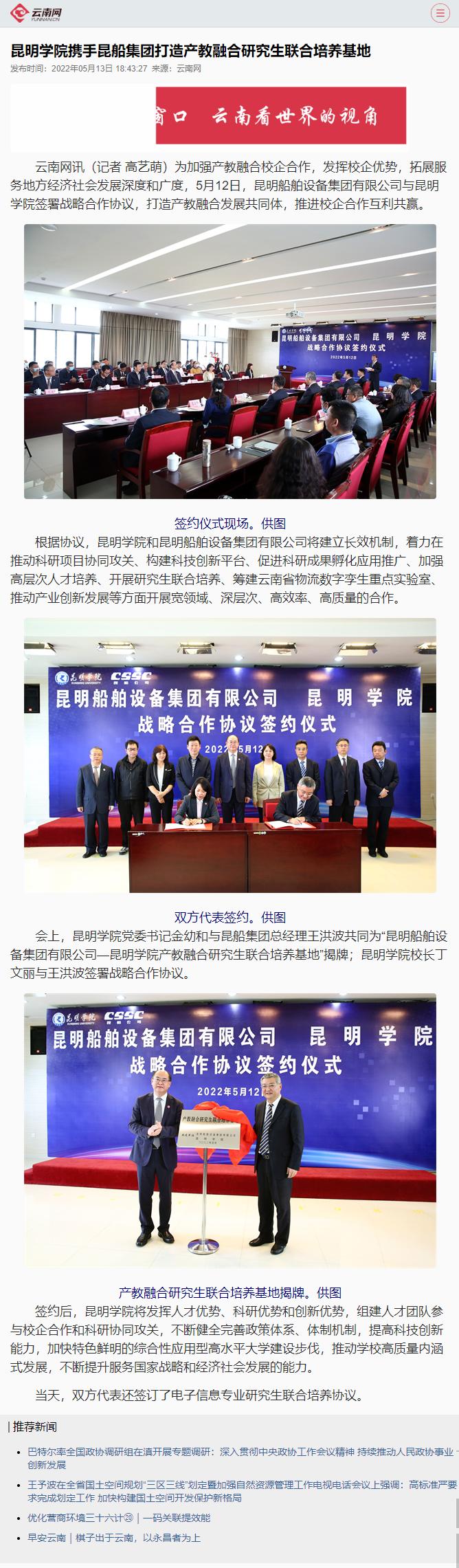 昆明學(xué)院攜手昆船集團(tuán)打造產(chǎn)教融合研究生聯(lián)合培養(yǎng)基地