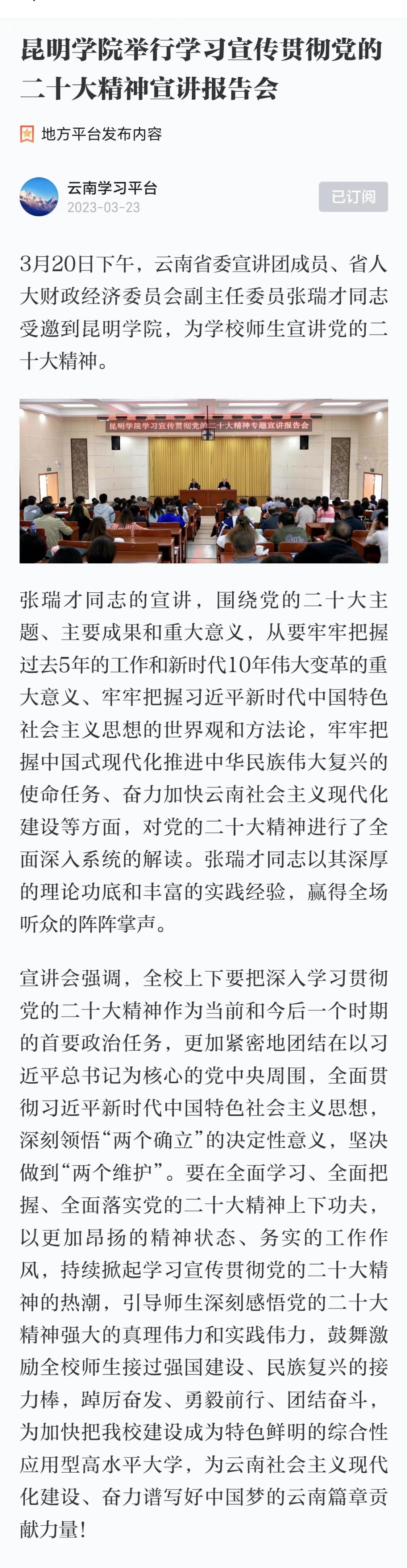 昆明學(xué)院舉行學(xué)習(xí)宣傳貫徹黨的二十大精神宣講報(bào)告會(huì)