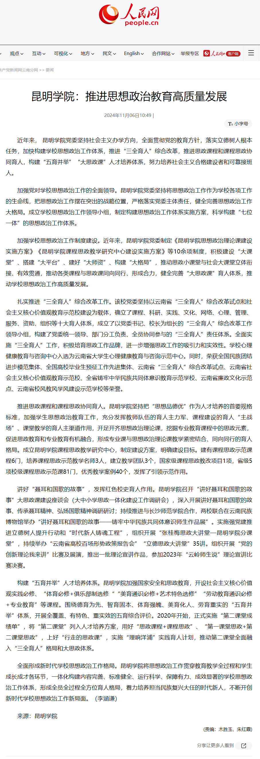 昆明學院:推進思想政治教育高質量發(fā)展