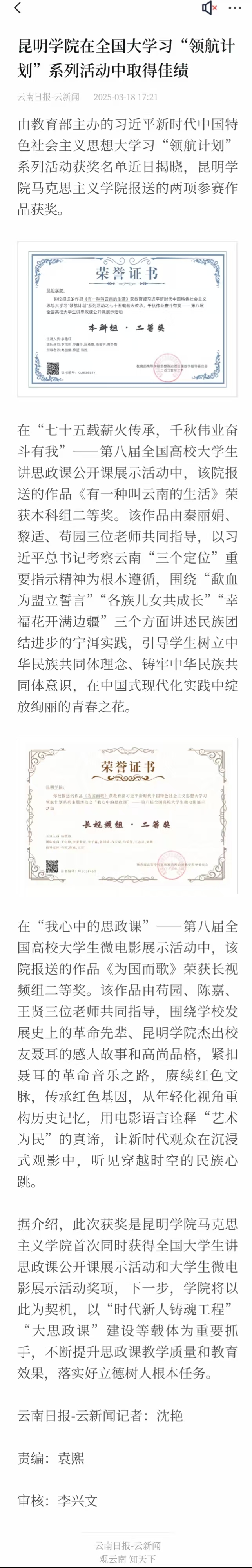 昆明學(xué)院在全國大學(xué)習(xí)“領(lǐng)航計劃”系列活動中取得佳績