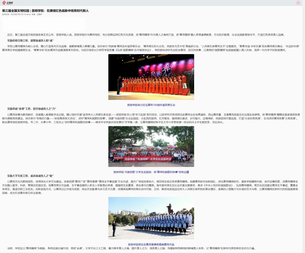 第三屆全國文明校園 | 昆明學(xué)院:在賡續(xù)紅色血脈中培育時(shí)代新人