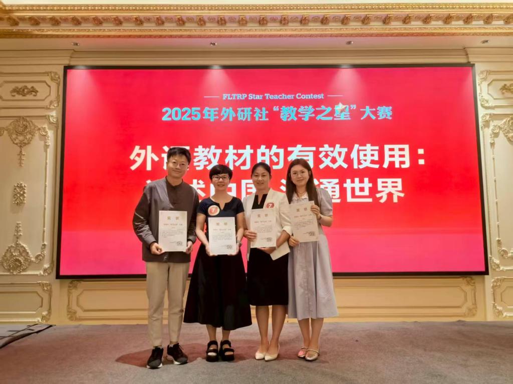 8月1日至4日,由外語教學(xué)與研究出版社主辦的“教學(xué)之星”大賽(英語專業(yè)組)全國半決賽在湖北武漢隆重舉行。經(jīng)層層選拔,外國語學(xué)院英語專業(yè)教師團(tuán)隊(duì)——張茗沁、趙瑾、許淼、黃翰、刁雪靜五位老師憑借卓越的教學(xué)設(shè)計(jì)與出色的課堂呈現(xiàn),在全國半決賽中斬獲特等獎(jiǎng)。
