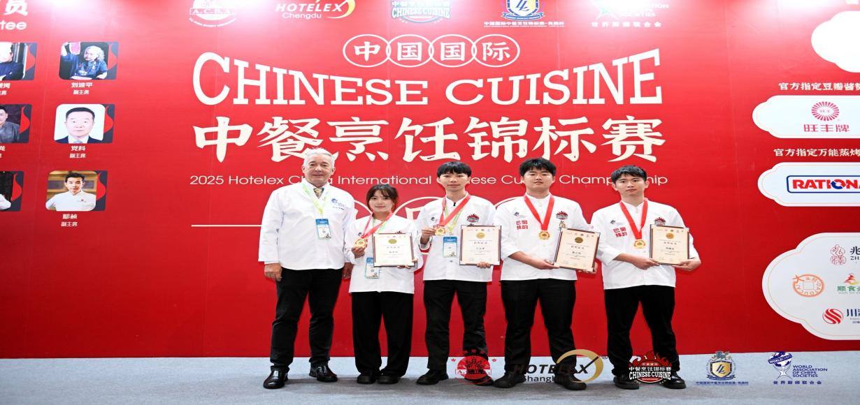 7?24日—26日,2025Hotelex中國國際中餐烹飪錦標(biāo)賽圓滿落幕。旅游學(xué)院團(tuán)隊(duì)在孫志強(qiáng)副院?、王勇和楊升?師帶領(lǐng)下獲得佳績。楊升、普?學(xué)、蘭永軍、周順發(fā)獲得團(tuán)隊(duì)?獎。岳李娜同學(xué)獲得中式禽類主菜烹飪?獎、中式豬?主菜烹飪銀獎,普?學(xué)同學(xué)獲得中式點(diǎn)?制作銀獎,楊?鳳同學(xué)獲得中式豬?主菜烹飪銀獎、中國創(chuàng)新主菜烹飪銀獎,蘭永軍同學(xué)獲得中式禽類主菜烹飪銅獎,周順發(fā)同學(xué)獲得中式牛肉主菜烹飪銅獎。