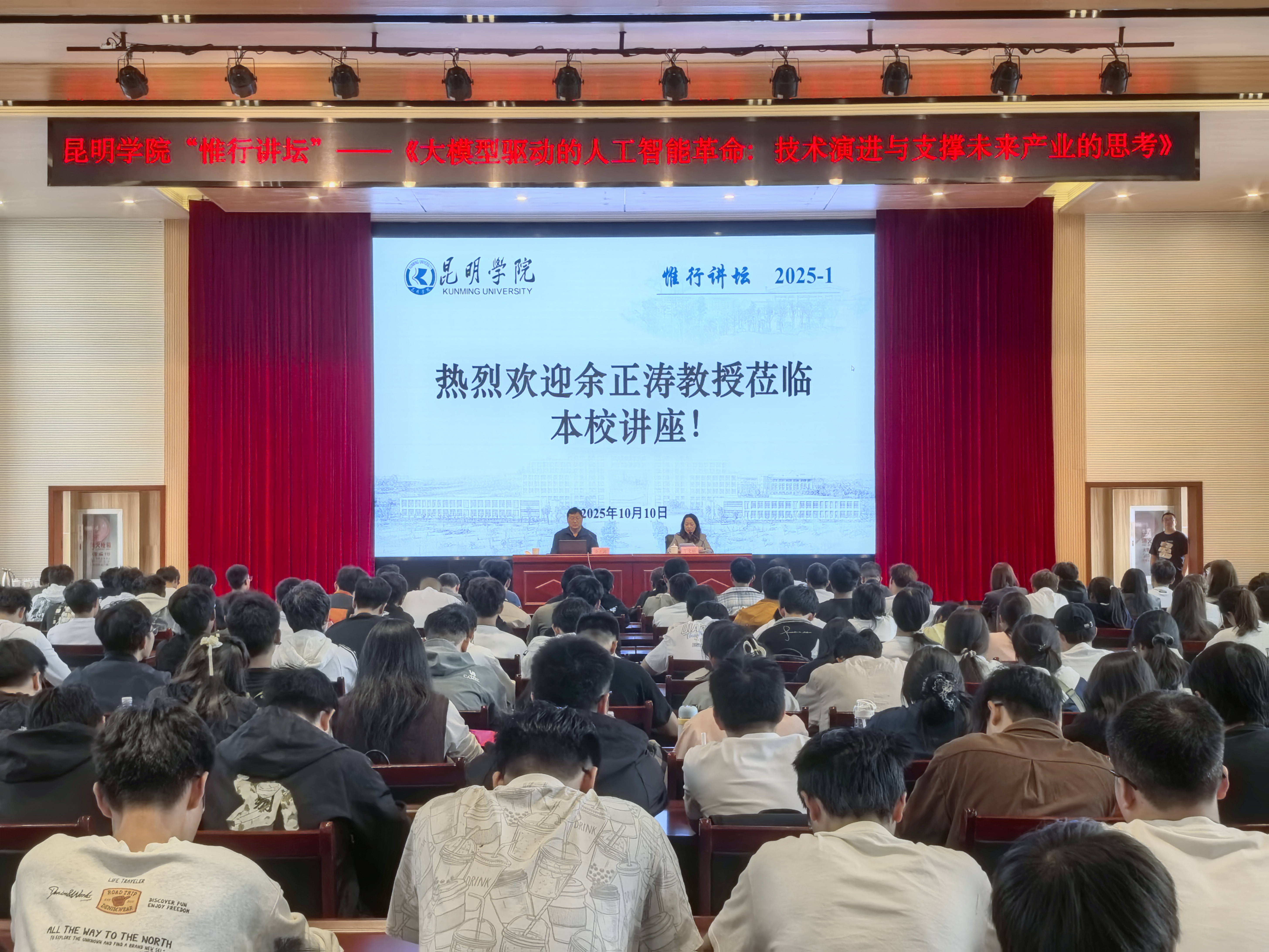 10月10日下午,昆明學(xué)院“惟行講壇”在博學(xué)報(bào)告廳舉行,講座由云南省人工智能重點(diǎn)實(shí)驗(yàn)室主任余正濤教授主講。學(xué)校黨委副書記、校長丁文麗教授主持講座,科技處、經(jīng)濟(jì)管理學(xué)院、信息工程學(xué)院、建筑工程學(xué)院、機(jī)電工程學(xué)院等280余名師生參加。