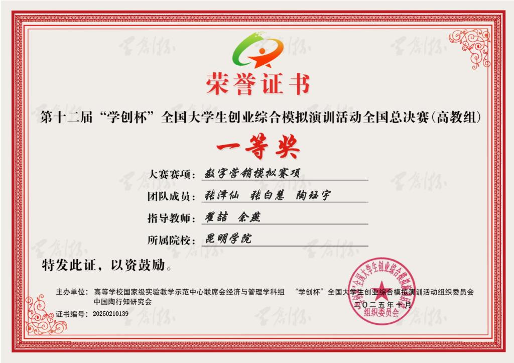 10月18日,由高等學(xué)校國(guó)家級(jí)實(shí)驗(yàn)教學(xué)示范中心聯(lián)席會(huì)經(jīng)濟(jì)與管理學(xué)科組主辦,成都理工大學(xué)承辦的第十二屆“學(xué)創(chuàng)杯”全國(guó)大學(xué)生創(chuàng)業(yè)綜合模擬演訓(xùn)活動(dòng)全國(guó)總決賽圓滿落幕。我校外國(guó)語(yǔ)學(xué)院參賽團(tuán)隊(duì)“數(shù)焰先鋒”在數(shù)字營(yíng)銷模擬賽項(xiàng)中一路過關(guān)斬將,在全國(guó)總決賽中獲一等獎(jiǎng),創(chuàng)造了外國(guó)語(yǔ)學(xué)院在“學(xué)創(chuàng)杯”全國(guó)大學(xué)生創(chuàng)業(yè)模擬演訓(xùn)競(jìng)賽中的歷史性突破,是外國(guó)語(yǔ)學(xué)院長(zhǎng)期以來(lái)重視學(xué)生創(chuàng)新創(chuàng)業(yè)能力培養(yǎng)的成果體現(xiàn)。
