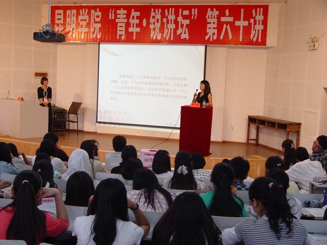 5月30日晚,由校團(tuán)委主辦的“青年•銳講壇”第六十講“美麗‘妝點(diǎn)’青春——大學(xué)生個(gè)人形象塑造”在青年中心學(xué)生報(bào)告廳成功舉辦。本場講座邀請(qǐng)到了國家高級(jí)化妝師、中央戲劇學(xué)院人物造型設(shè)計(jì)專業(yè)研修學(xué)員、藝術(shù)學(xué)碩士、云南成遠(yuǎn)形象設(shè)計(jì)藝術(shù)培訓(xùn)學(xué)校校長林燕擔(dān)任主講人。